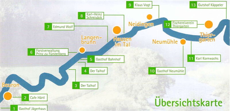 Wenn Sie direkt am Campingplatz angeln wollen, wenden Sie sich an den Pächter hier in Hausen: Karl-Heinz Schreiyäck, Tel.: 07579/332