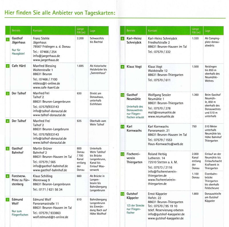Der Nachweis eines gültigen Angelscheins ist Voraussetzung, um Tageskarten zu erwerben! Näheres erfahren Sie von den einzelnen Pächtern.